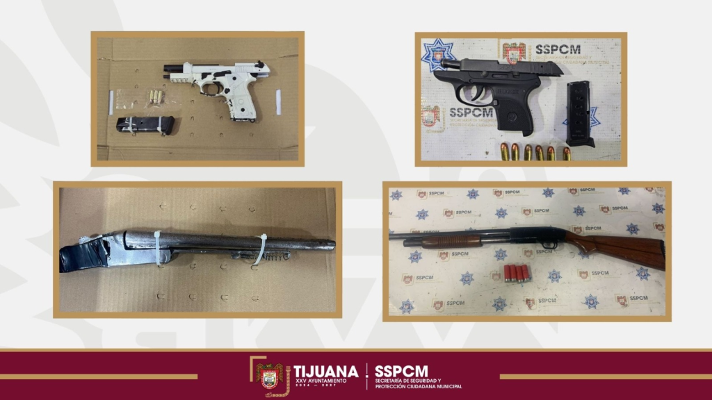 En distintos operativos de patrullaje en la ciudad, la Policía Municipal de Tijuana detuvo a cuatro personas y aseguró igual número de armas de fuego en las colonias Valle Verde, Villa del Campo, Madero y Sánchez Taboada.