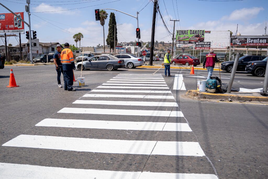 En otro punto, se realizaron trabajos de limpieza, deshierbe, poda y mantenimiento de camellón central, el balizamiento de cruceros, señalamientos horizontales y divisiones de seguridad de la ciclovia, además del desazolve y barrido manual, sobre el blvd. Federico Benítez, del fraccionamiento Yamille, en la Delegación La Mesa.