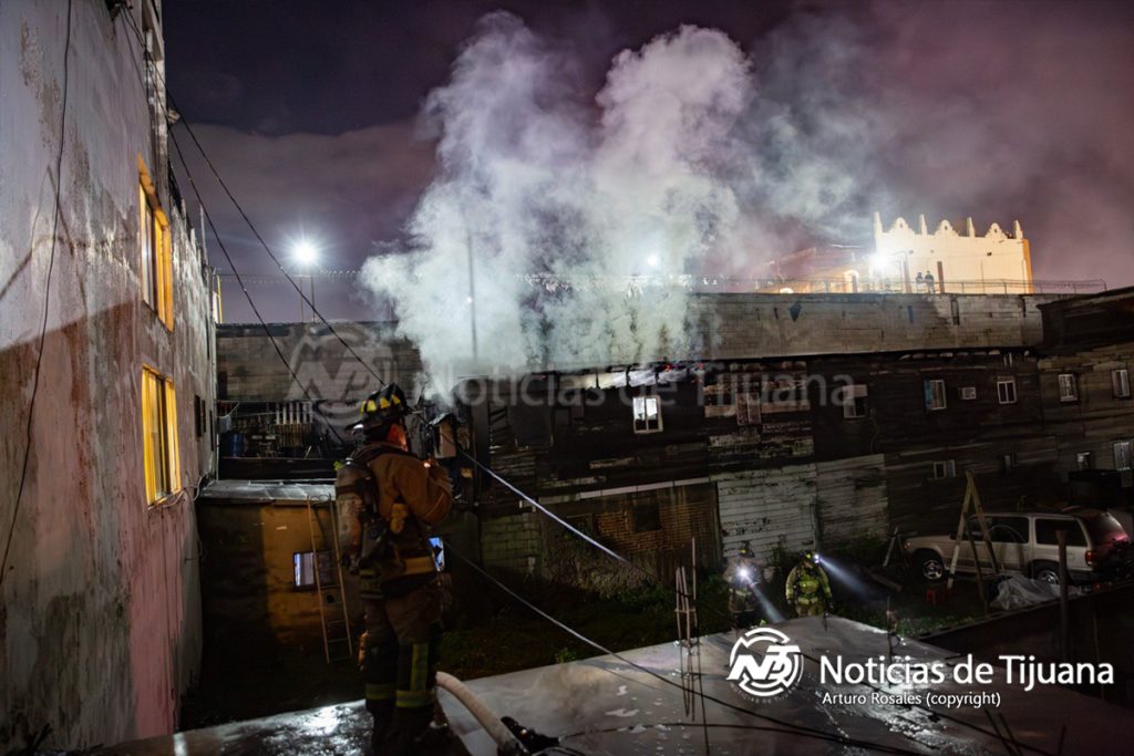 Un incendio consumió parte de una cuartería de madera ubicada sobre la calle Baja California, entre las avenidas Constitución y Revolución, en la Zona Norte.