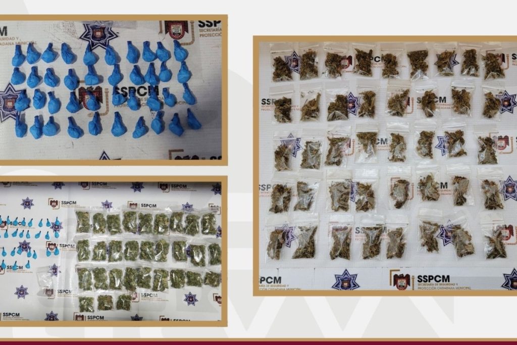 En Urbi Villas del Prado Segunda Sección fue intervenido César Cristian “N”, a quien le aseguraron 41 envoltorios con lo que parecía ser marihuana. En Villas del Álamo, tras un reporte ciudadano, fueron detenidos Ricardo “N”, con 30 envoltorios similares, y Axel “N”, con 28 dosis con características del “cristal”.