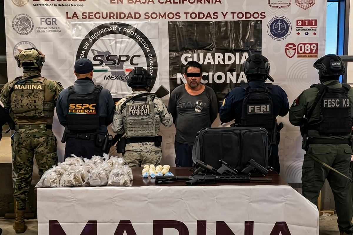 El detenido fue identificado como Gerardo “N”, de 55 años y originario de Guadalajara, Jalisco, quien caminaba sobre la calle Cañón del Padre arrastrando una maleta de viaje y con actitud apresurada, lo que llamó la atención de los oficiales. Al marcarle el alto para una inspección preventiva, el hombre evitó responder a los cuestionamientos, lo que incrementó la sospecha.