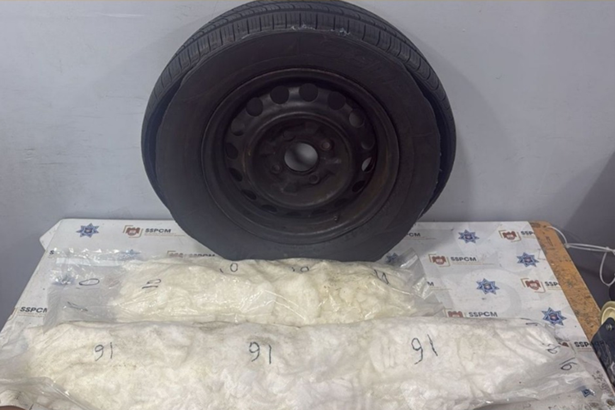 Alertada, la ciudadana se retiró y contactó a las autoridades, esperando a los agentes en el bulevar Agua Caliente. Durante la inspección, los policías encontraron una llanta cortada montada en un rin metálico negro, que ocultaba varios paquetes de plástico con una sustancia granulada similar al ‘cristal’. El decomiso, con un peso de 11.645 kilogramos, fue trasladado a la Fiscalía General de la República (FGR) para su investigación.