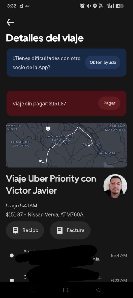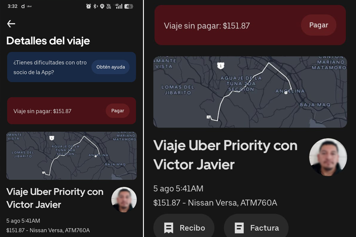 Sin embargo, momentos después, al revisar la aplicación, se percató de que el conductor, identificado en la plataforma como “Javier”, había reportado el viaje como no pagado, dejándole una deuda pendiente y una marca negativa en su cuenta.
