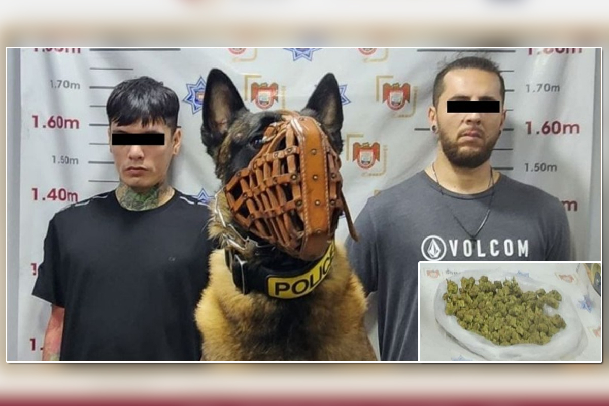 Como parte de los patrullajes preventivos que realiza la Unidad de Operaciones Caninas de la Secretaría de Seguridad y Protección Ciudadana Municipal (SSPCM), se logró el aseguramiento de dos personas y el decomiso de probable droga gracias a la oportuna intervención de un agente canino.