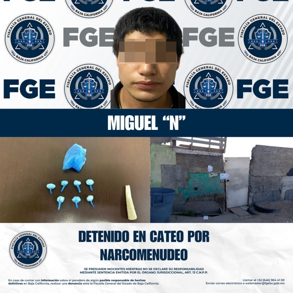 TIJUANA, BC, (NDT).- El operativo se llevó a cabo en un inmueble ubicado en la calle Génesis, donde agentes de la Fiscalía lograron asegurar a Miguel “N”, quien se encontraba en el lugar al momento de la intervención.
