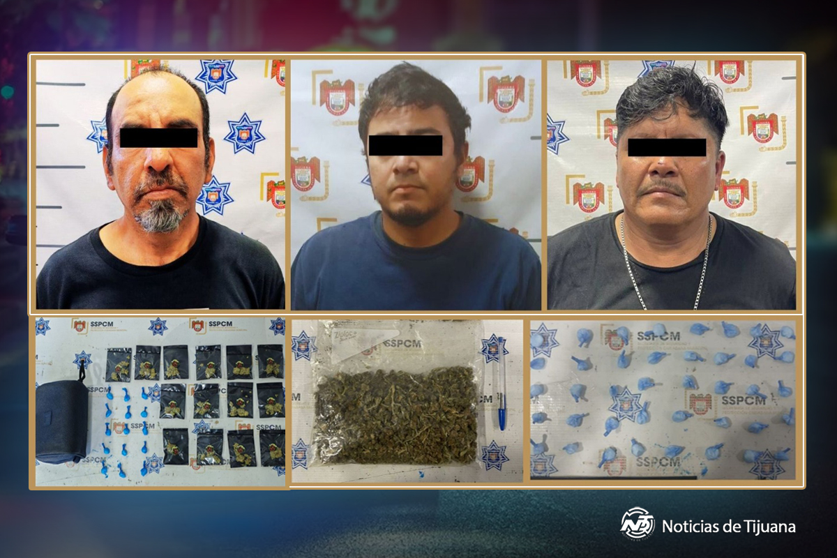 Los detenidos fueron sorprendidos en circunstancias que los vinculan con la posible distribución de enervantes, por lo que fueron asegurados junto con diversos envoltorios que contenían una sustancia granulada al tacto, con características similares a la droga conocida como cristal, así como hierba verde seca con las propiedades de la marihuana y pastillas de fentanilo.