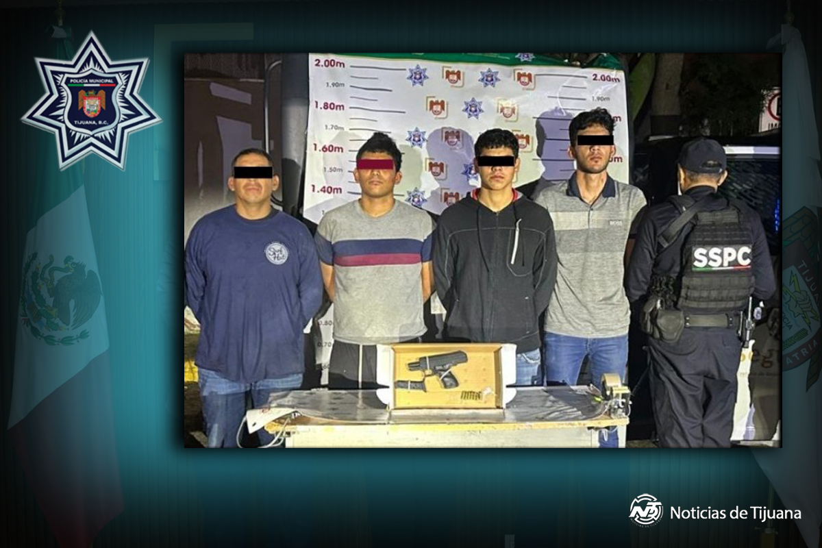 Cuatro individuos fueron arrestados por la portación no autorizada de un arma de fuego, durante un operativo conjunto entre la SSPCM, la SSPC Federal y la Guardia Nacional en Lomas Taurinas.