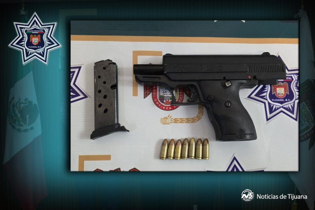 Los agentes identificaron un automóvil Volkswagen blanco sin placas, motivo por el cual le marcaron el alto. Al revisar el interior, localizaron una pistola tipo escuadra, procediendo con la detención de los ocupantes.