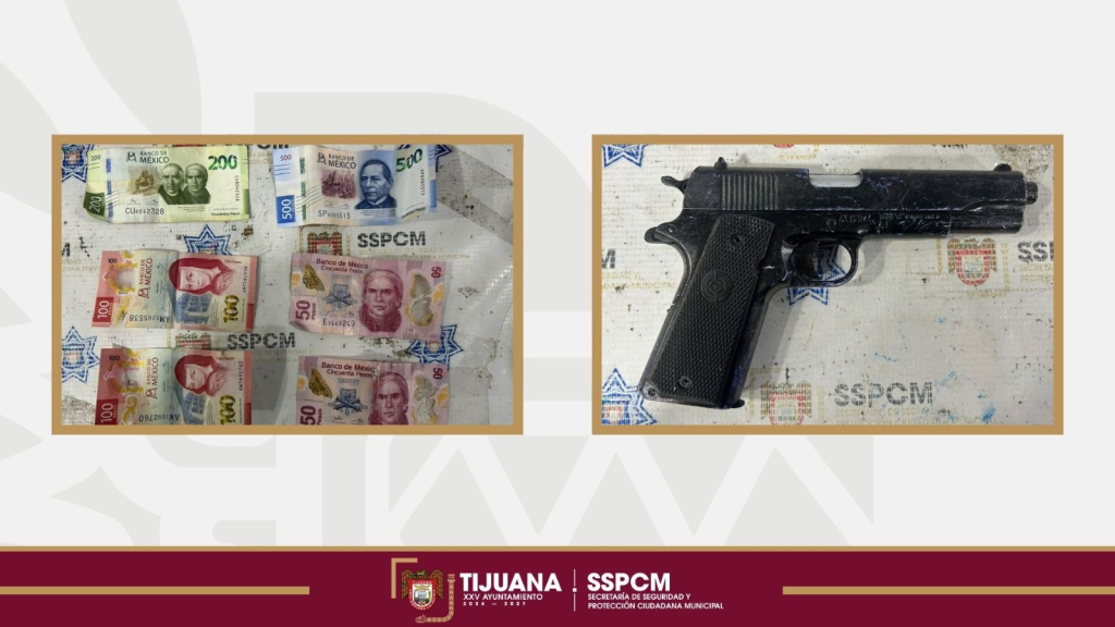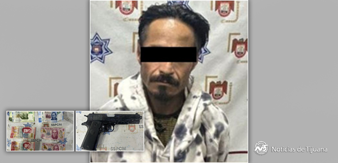 Tras interceptarlo en la avenida La Campiña, se le encontró un arma de utilería y mil pesos en efectivo. La víctima señaló directamente a Alejandro “N” como el responsable del robo.