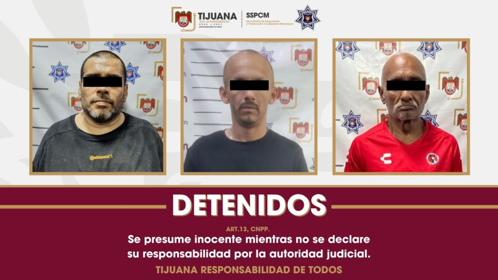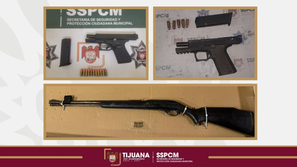 Tres hombres fueron detenidos en diferentes colonias de Tijuana por la presunta portación de armas de fuego, en hechos ocurridos durante recorridos de vigilancia.