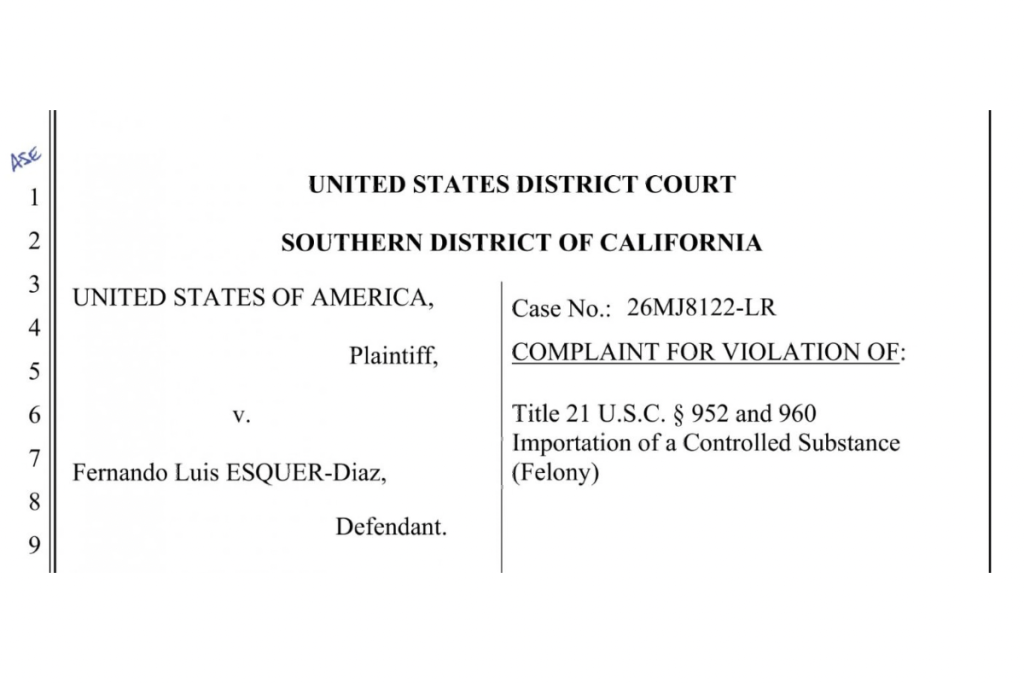 Fernando Luis Esquer Díaz fue arrestado en febrero al intentar cruzar a Estados Unidos; audiencia de cargos será el 26 de marzo en El Centro, California.