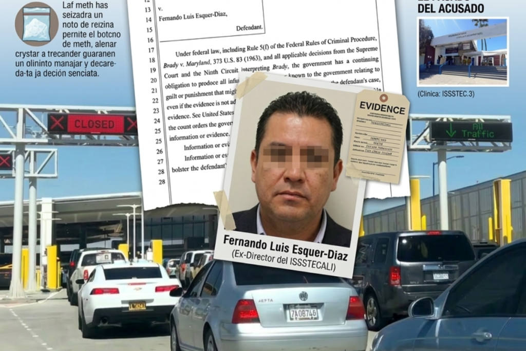 Autoridades estadounidenses detuvieron en febrero pasado a Fernando Luis Esquer Díaz, quien hasta hace aproximadamente un año se desempeñó como director de Servicios Generales del ISSSTECALI, luego de que presuntamente intentara ingresar a Estados Unidos con cerca de 70 kilogramos de metanfetamina ocultos en su vehículo.