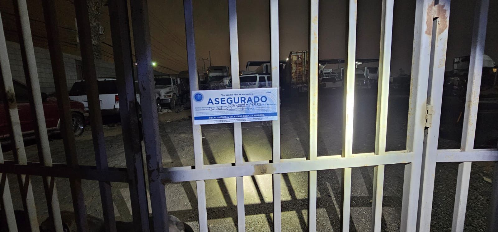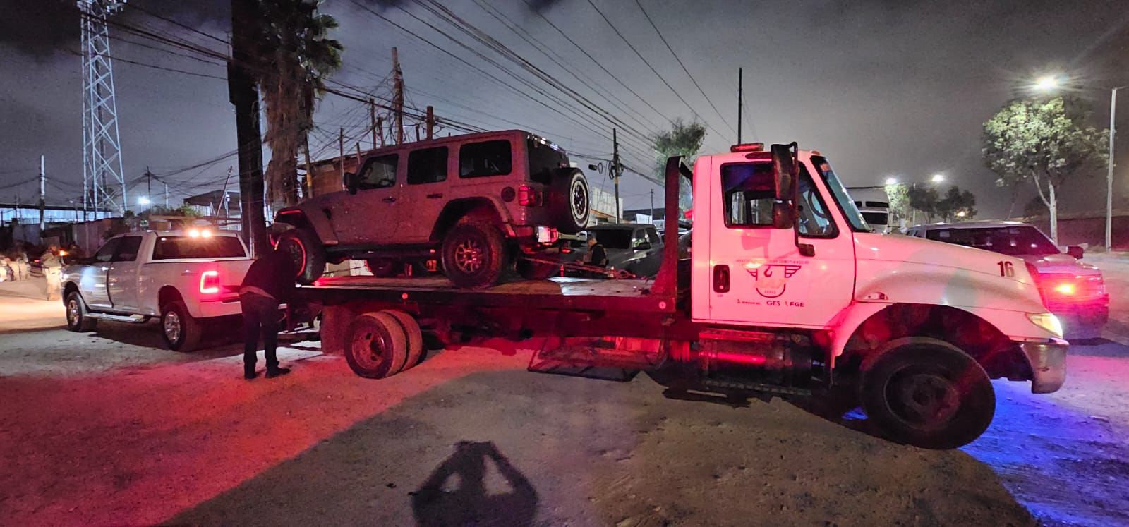 Durante el cateo se logró el aseguramiento de tres vehículos: uno tipo SUV, marca Jeep, modelo 2021, color gris, placas de circulación de California, con reporte de robo del 9 de mayo de 2025.