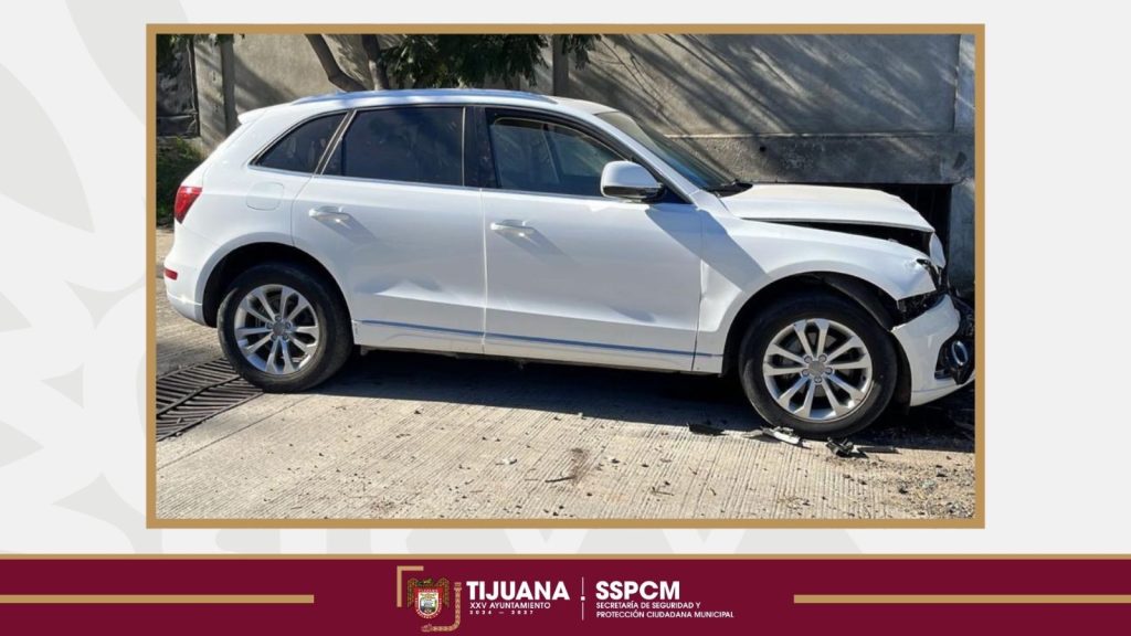 Con esa información, los agentes iniciaron la búsqueda y ubicaron una camioneta Audi blanca con placas de Utah circulando a exceso de velocidad. Los tripulantes coincidían con la descripción. Al intentar girar hacia una calle, el conductor perdió el control y se estrelló contra dos vehículos estacionados.