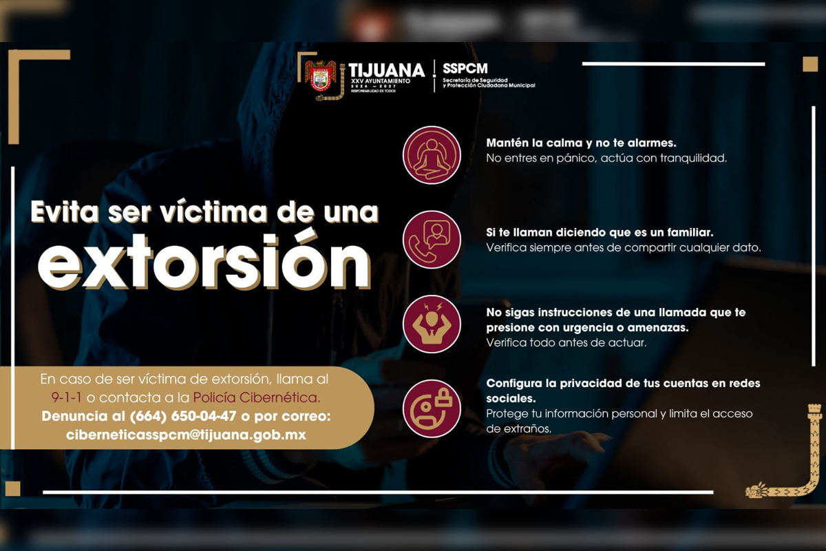 Con el objetivo de proteger a la ciudadanía y evitar que sean víctimas de extorsión, la Secretaría de Seguridad y Protección Ciudadana Municipal emite recomendaciones para identificar y actuar de manera correcta ante este tipo de delitos.
