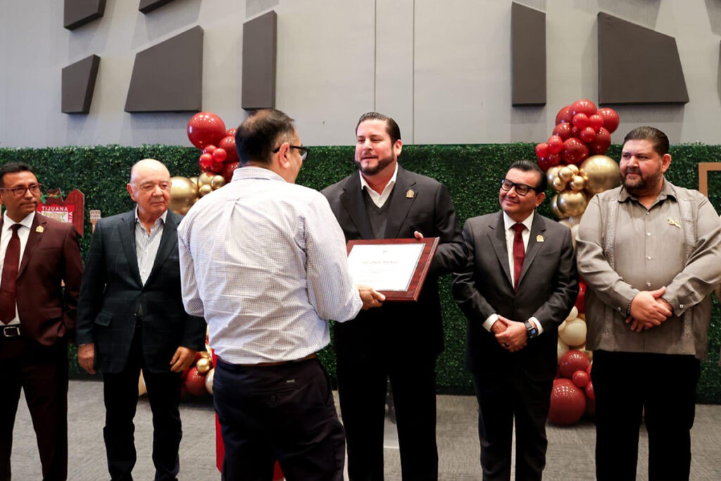Burgueño Ruiz entregó un reconocimiento especial a Carlos Bustamante Anchondo, presidente de la Fundación Emma Anchondo de Bustamante A.C., por su histórica contribución a la educación local: “Porque hace más de 60 años, sin la visión y apoyo de la familia Bustamante Anchondo, Tijuana no habría sido la pionera en el ámbito educativo nacional al crear un sistema educativo municipal que hoy es motivo de orgullo para las y los tijuanenses”, destacó el primer edil.