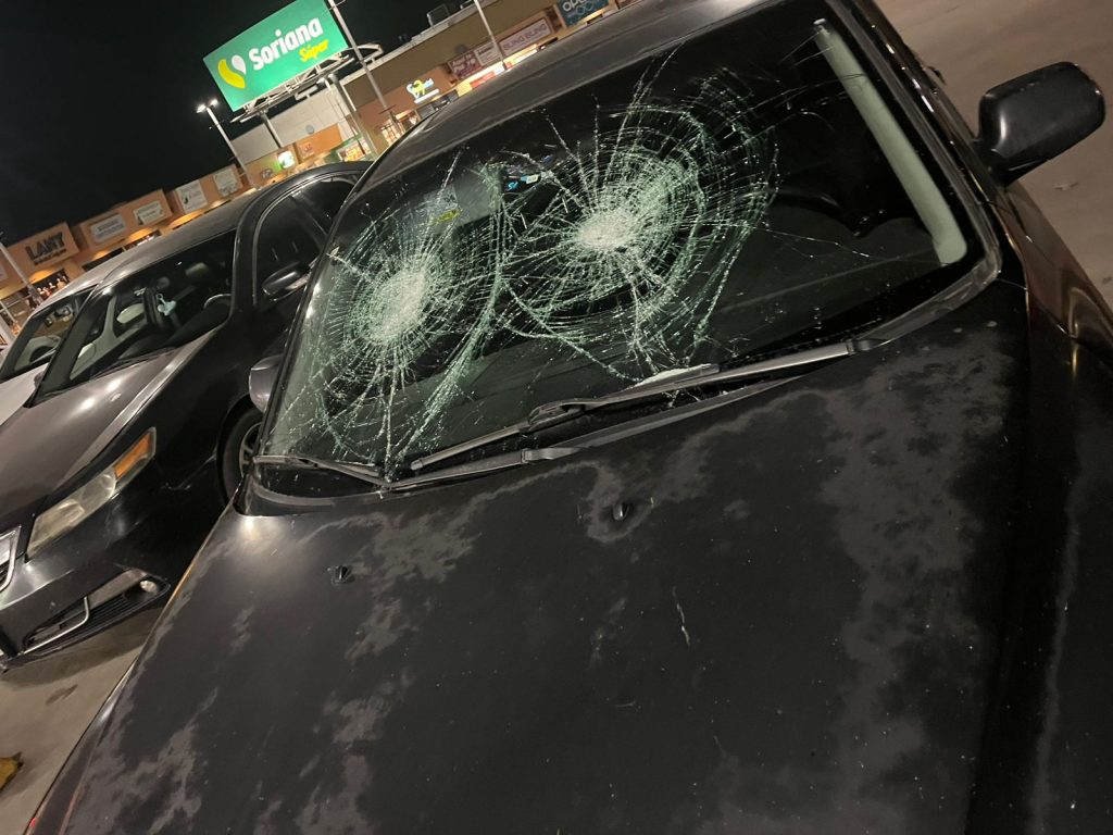 Posteriormente, aseguró que fue seguida por otro vehículo al salir del centro comercial, por lo que decidió desviarse hacia el cañón Miramar. Indicó que al detenerse en una zona donde había personas, alguien lanzó una piedra que rompió el cristal de su vehículo, por lo que ella tomó el mismo objeto y dañó el parabrisas del otro automóvil.