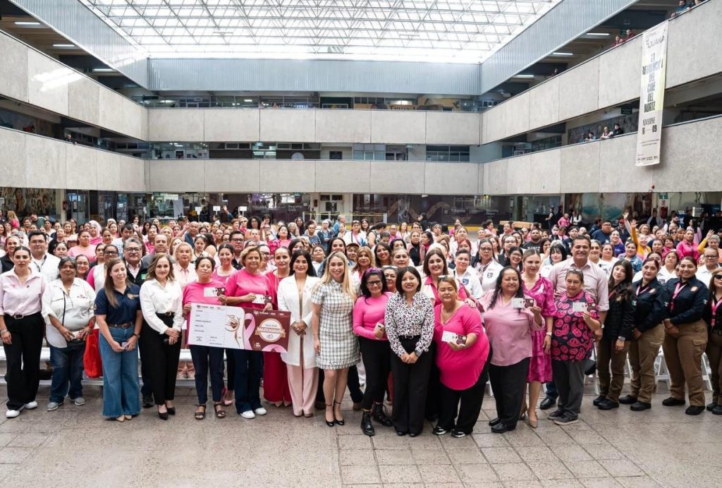 Durante la actividad denominada ‘Día Rosa contra el Cáncer de Mama’, realizada en Palacio Municipal, la Dirección Municipal de Salud Pública, Asistencial y Apoyo a Seguridad Ciudadana, coordinó la entrega de los vales a líderes comunitarias y asociaciones civiles.