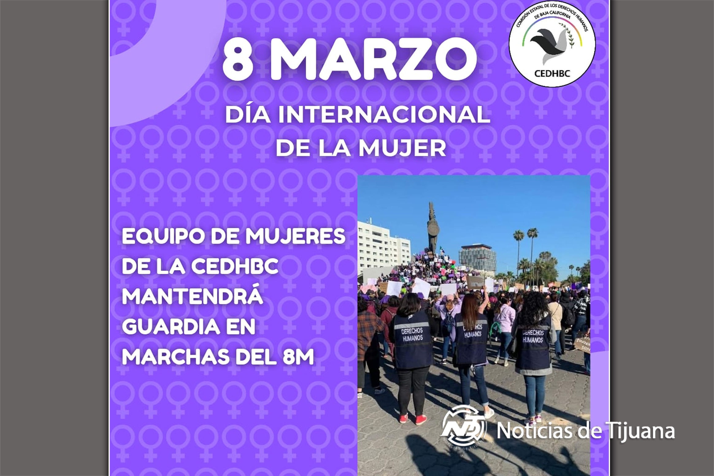 El equipo de mujeres que laboran en la Comisión Estatal de los Derechos Humanos de Baja California (CEDHBC) dispondrán guardias en campo en todos los municipios en los que colectivas han convocado a marchas con motivo del 8M, Día Internacional de las Mujeres.