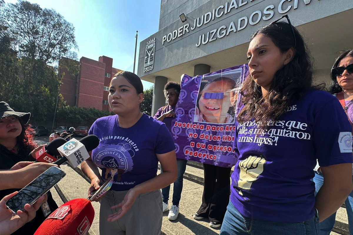 Shamanta Yunuel Sesma Valdez, cofundadora del colectivo, señaló que “hoy estamos aquí para denunciar de manera particular el caso de la menor ‘Aranza’ y su mamá Marlene Padilla, quienes han sido víctimas de abuso por parte del padre y del sistema judicial”.
