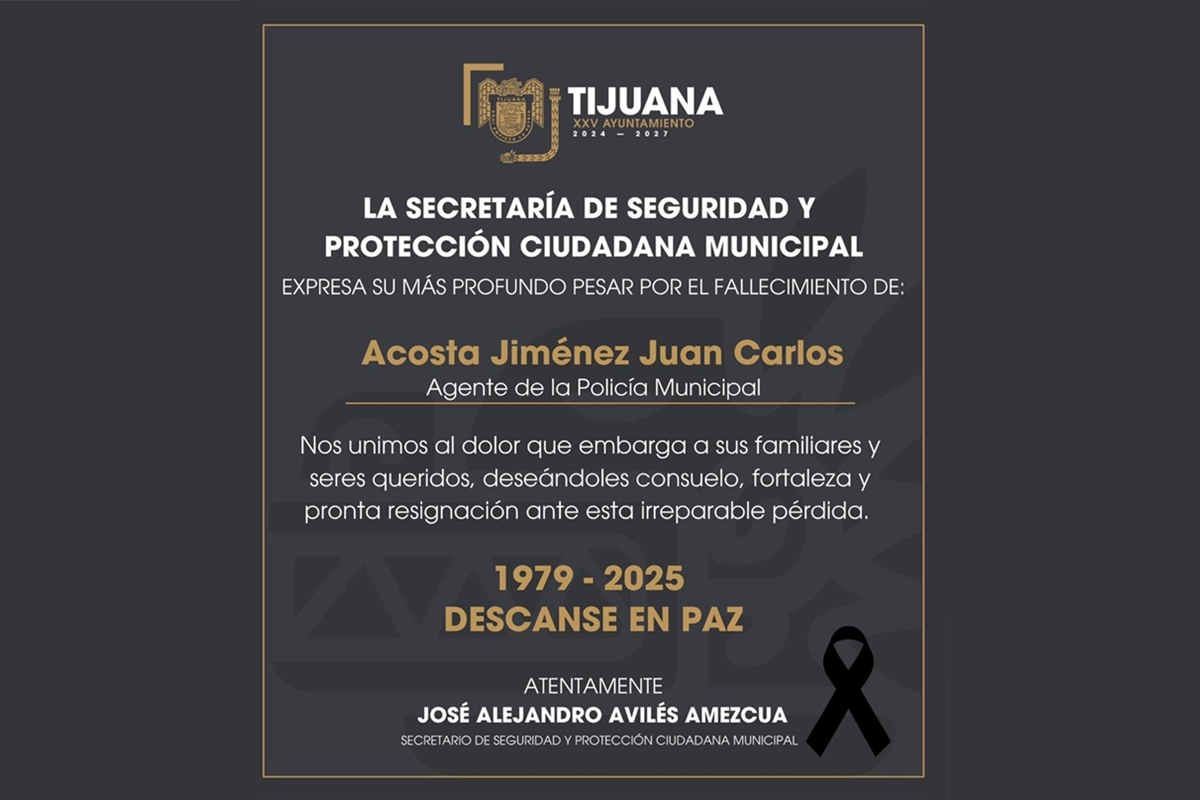 Desde el ayuntamiento de Tijuana, expresaron sus condolencias a su familia, amigos y compañeros de la corporación, quienes, lo recordarán por su valioso servicio.