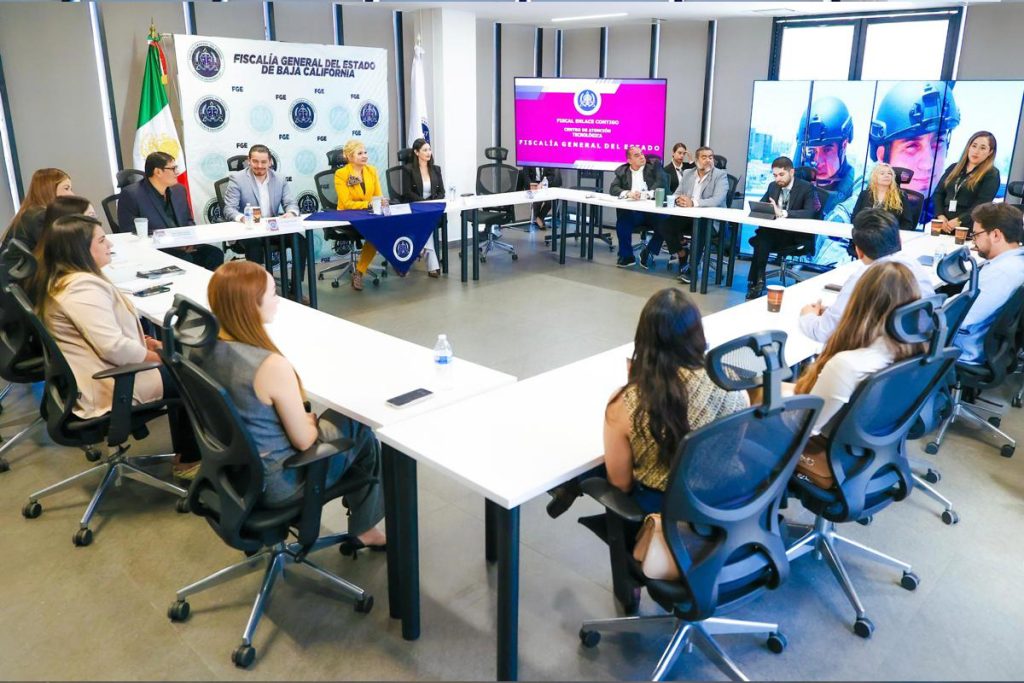 En la reunión participaron, Sergio Fuentes, presidente de Jóvenes Empresarios de CANACINTRA Tijuana; Juan Carlos Buenrostro Molina, coordinador de Gabinete de la FGE; Sindy del Río, consejera de Jóvenes Empresarios y representante de la Comisión de Mujeres de CANACINTRA; Rubén Alfredo Maximiliano Ramos Jiménez, Fiscal Regional de Tijuana; Benito Velázquez Hernández, director del programa “Fiscal Enlace Contigo”; José Pedro Leyva, coordinador general del Centro Estatal de Inteligencia Preventiva; y Sonia López Urrea, directora general de Atención Ciudadana y Justicia Alternativa Penal.