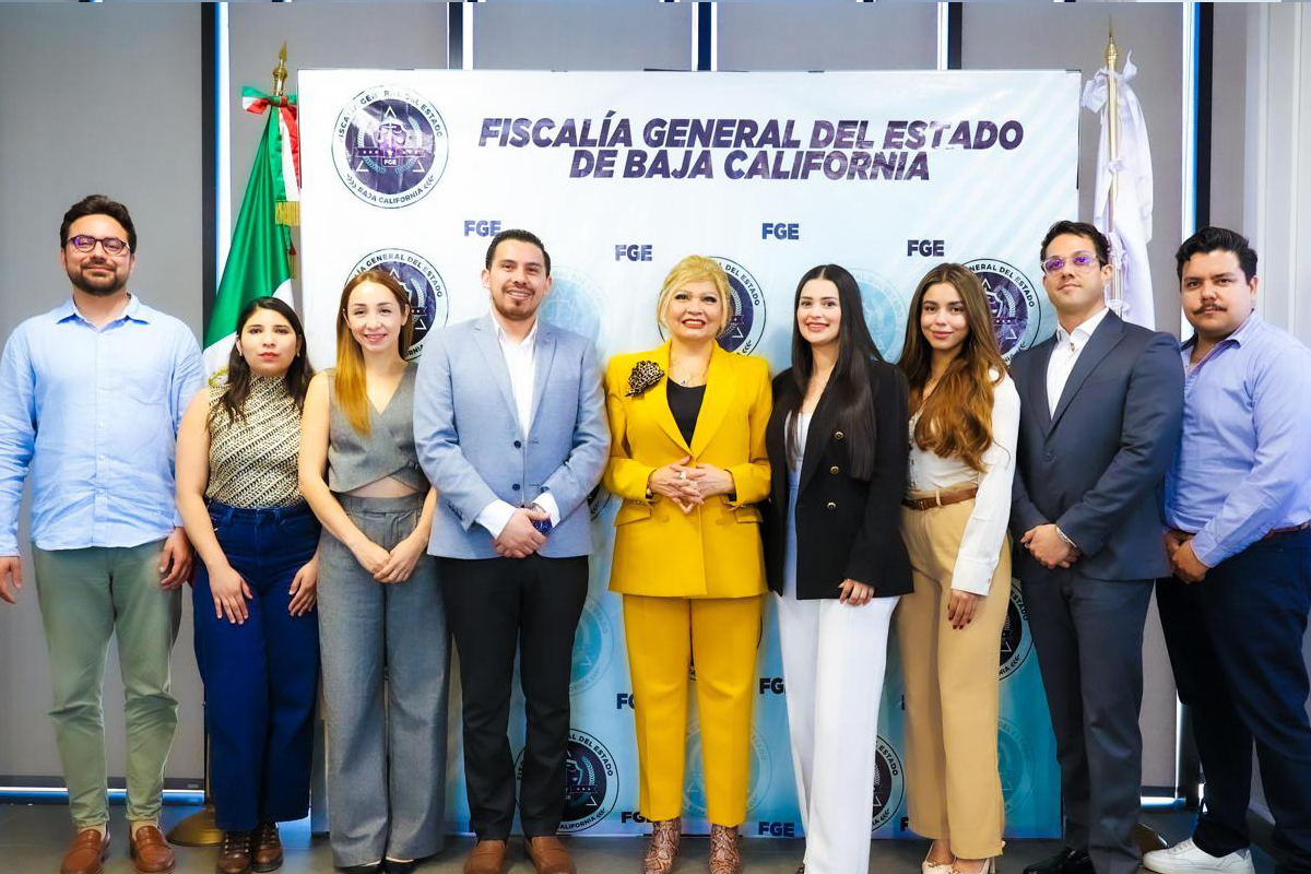 La Fiscal General del Estado, Dra. Ma. Elena Andrade Ramírez, sostuvo una reunión con la Comisión de Jóvenes Empresarios de CANACINTRA Tijuana, con el objetivo de escuchar sus puntos de vista y compartir información de utilidad para el sector productivo.