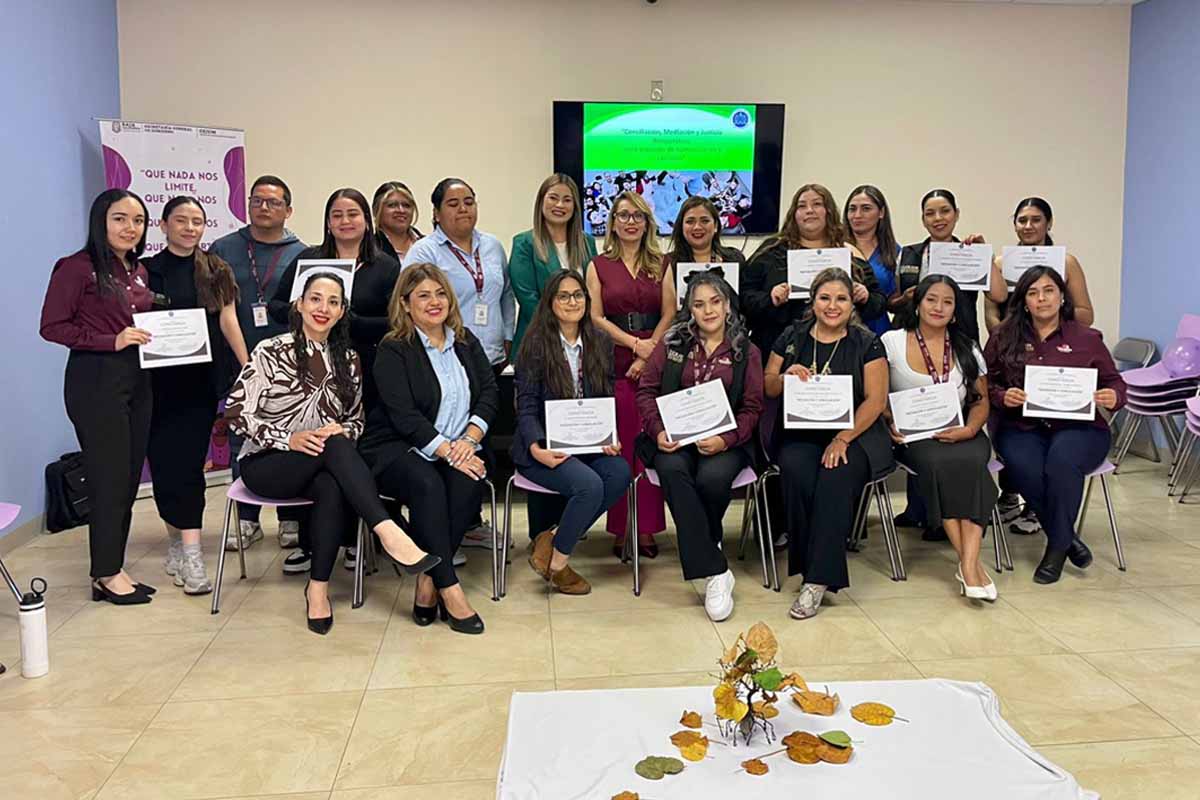 La Fiscalía General del Estado, impartió cuatro talleres dirigidos al personal del Centro de Justicia para las Mujeres del Estado de Baja California (CEJUM), con el objetivo de fortalecer sus capacidades en materia de mediación y conciliación.