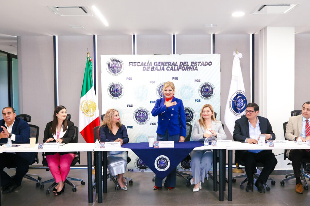 La Fiscal General del Estado, Dra. Ma. Elena Andrade Ramírez, sostuvo una reunión de trabajo con la Cámara Nacional de Comercio en Pequeño, Servicios y Turismo de Tijuana (CANACOPE), encabezada por su presidenta, Lic. Mónica Alfaro Reyes, y su vicepresidenta ejecutiva, Lic. Gina Villalobos.