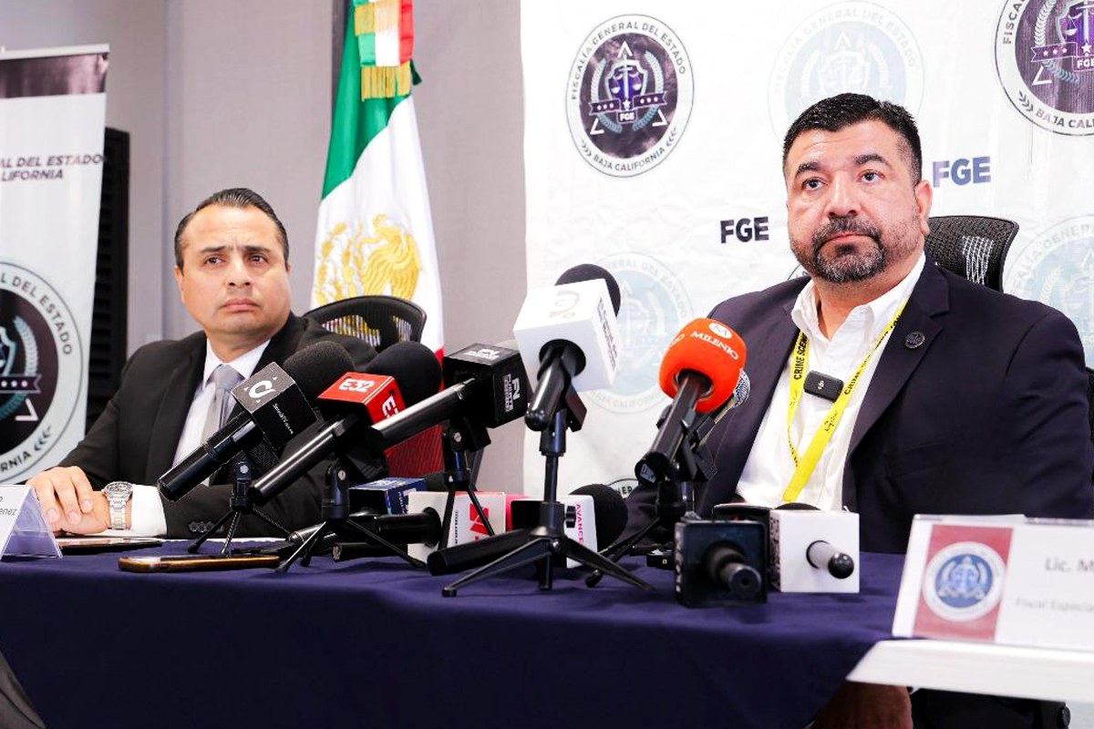 La Fiscalía General del Estado (FGE) llevó a cabo una conferencia de prensa encabezada por el Fiscal Regional de Tijuana, Maximiliano Ramos Jiménez, y el Fiscal Especializado en Delitos Contra la Vida, Miguel Ángel Gaxiola.