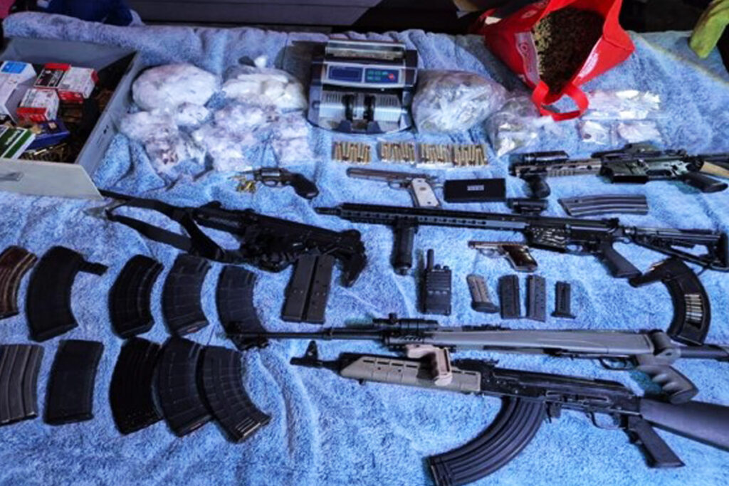Informó también, que derivado del fortalecimiento de investigación, en coordinación de la Agencia Estatal de investigación, elementos de la Fuerza Estatal de Seguridad Ciudadana, Guardia Nacional y Marina se logró mediante la cumplimentación de una orden de cateo la captura de un líder de un grupo criminal, generador de violencia en el valle de Mexicali, que estaba en poder de un arsenal, equipo táctico y diversa droga.