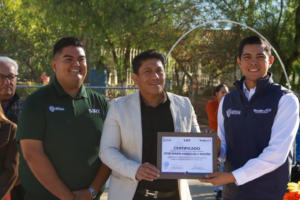En el mismo evento, Román Cota hizo entrega al director del plantel, Profesor Hugo Fonseca, de la constancia que acredita a la escuela como “Escuela Verde”, distintivo que reconoce las acciones sostenidas en favor del cuidado del medio ambiente, el reciclaje y el aprovechamiento responsable de los recursos.