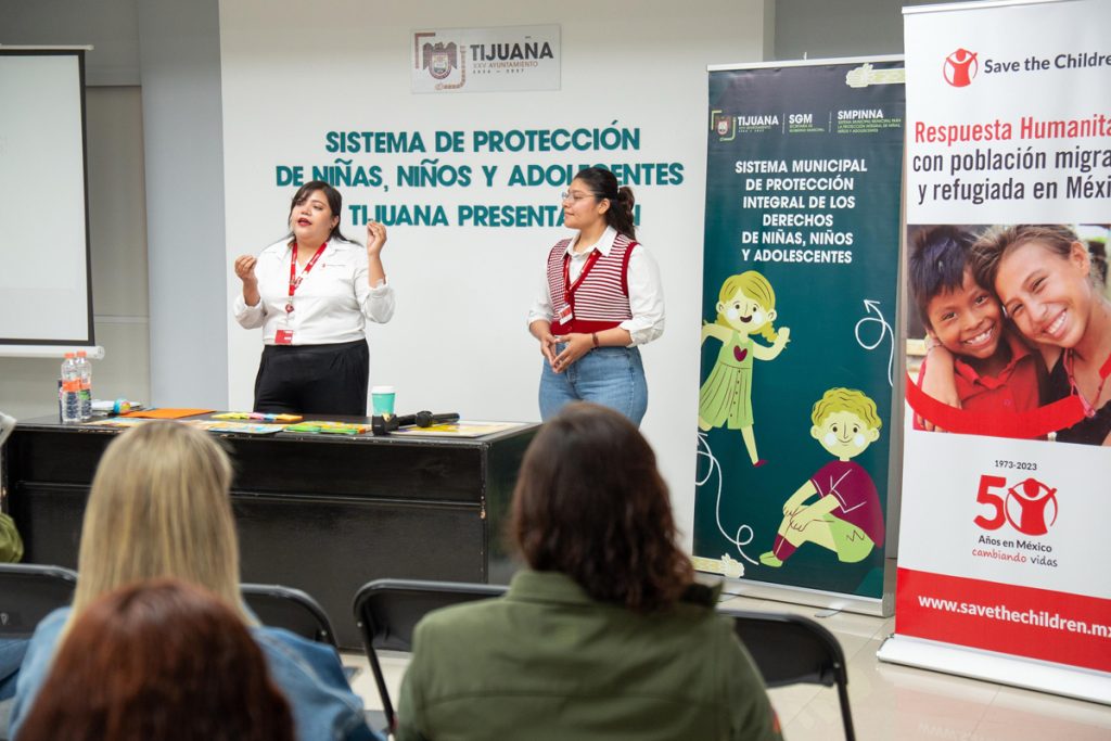 Por su parte, la gestora de protección en Save the Children, Diana Esmeralda Mokien Paniagua, externó: “En Save the Children buscamos proteger y garantizar los derechos de la niñez y la adolescencia, trabajamos en albergues y comunidades; tenemos 53 años de habernos constituido en México y alrededor de 10 años en Tijuana; buscamos con esta capacitación sensibilizar a los funcionarios municipales sobre este tema tan importante, sobre todo, puntualizando en el derecho a la educación de las personas en contexto de movilidad, ya que existe una ruta para el acceso escolar”.