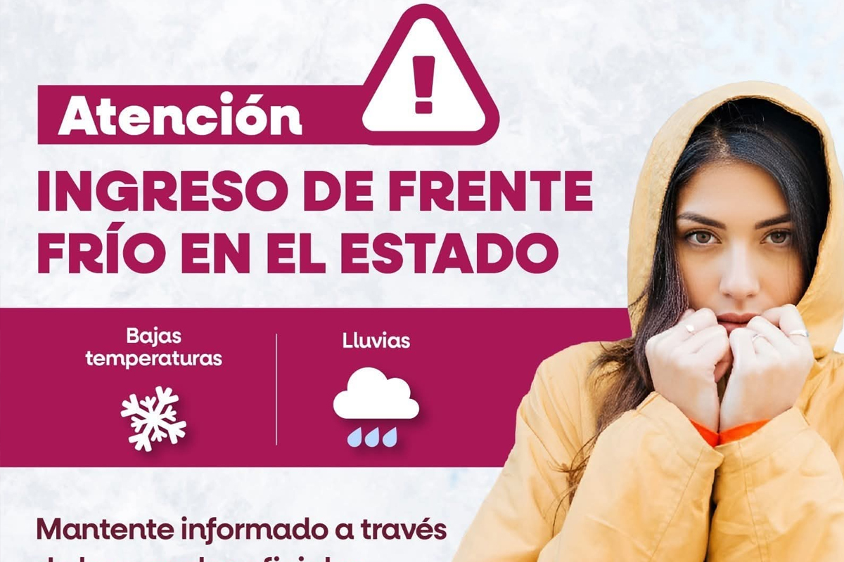 La Coordinación Estatal de Protección Civil (CEPC), con base en información del Servicio Meteorológico Nacional (SMN) alerta por los efectos meteorológicos derivados del frente frío número 39, los cuales afectarán a la entidad este fin de semana.