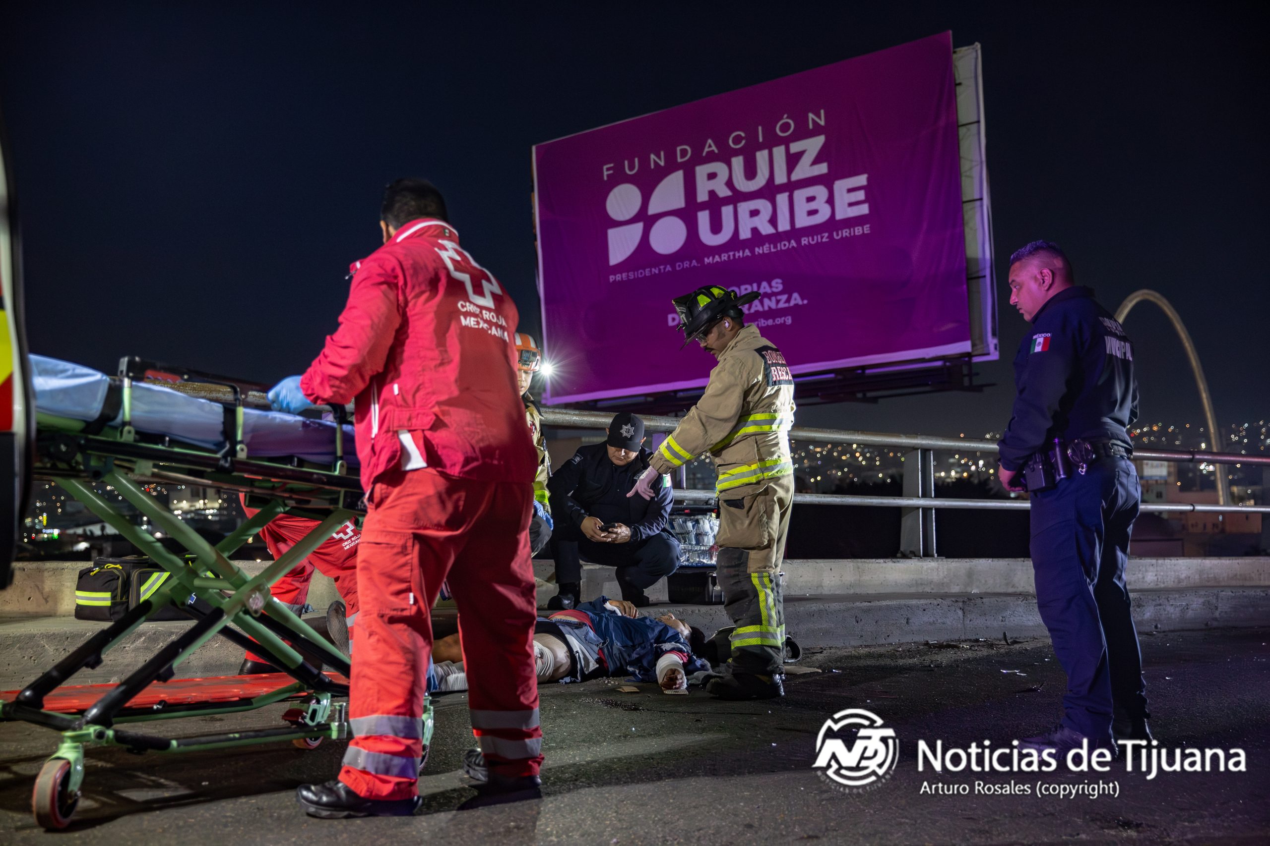 Paramédicos de la Cruz Roja brindaron los primeros auxilios al motociclista y lo trasladaron a un hospital, mientras bomberos apoyaron en las labores de atención.