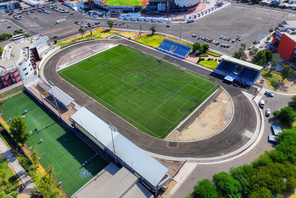 La pista de atletismo contará con ocho carriles de 400 metros, así como áreas especializadas para salto de longitud, salto de altura, salto con pértiga, así como zonas destinadas al lanzamiento de jabalina y bala.