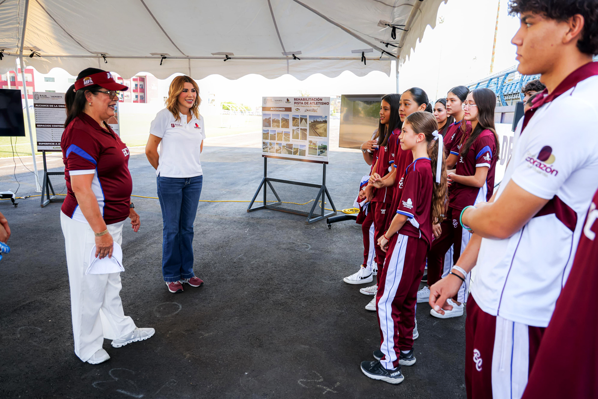 Para garantizar que las y los jóvenes de alto rendimiento cuenten con óptimas instalaciones para su desarrollo deportivo y profesional, la gobernadora Marina del Pilar Avila Olmeda supervisó los trabajos de rehabilitación de la pista de atletismo en la Ciudad Deportiva de Mexicali, obra que representa una inversión de 17 millones de pesos.