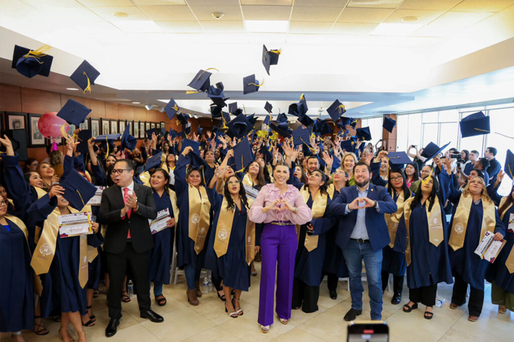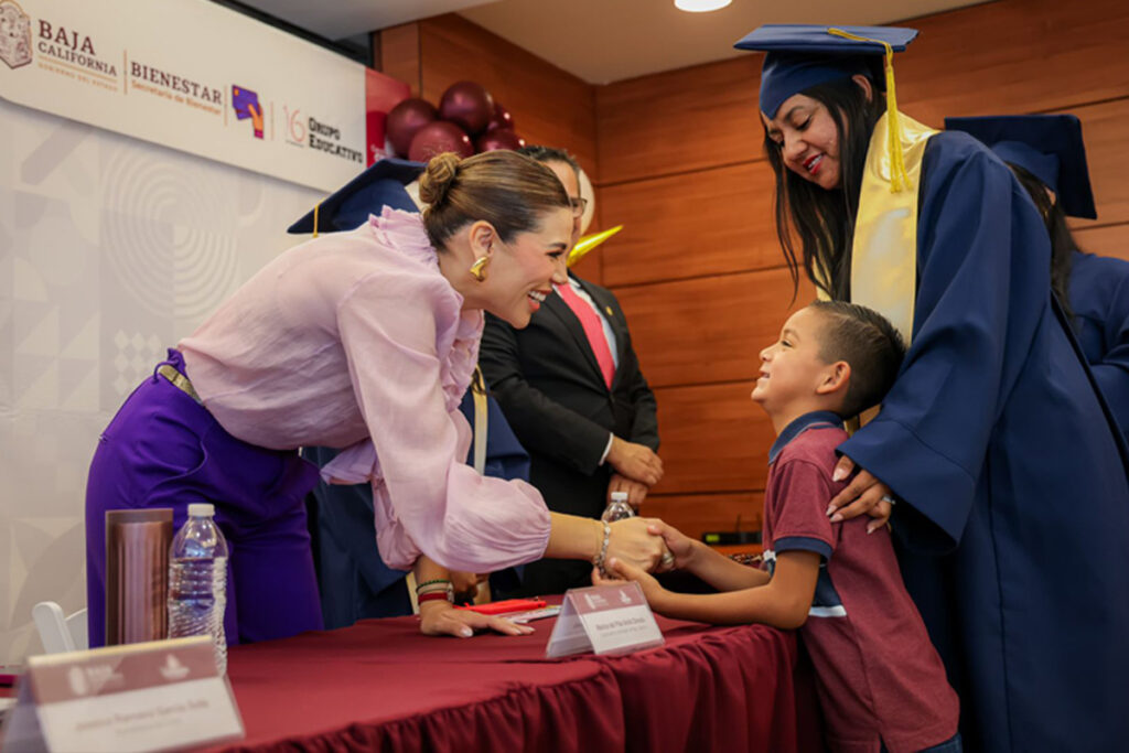 Felicitó a las mujeres graduadas por haber concluido el bachillerato, además de recordar que la Tarjeta Violeta ha pasado de ser un programa a ser un derecho constitucional en Baja California, que va de la mano con el impulso de oportunidades para que las mujeres amplíen sus estudios.