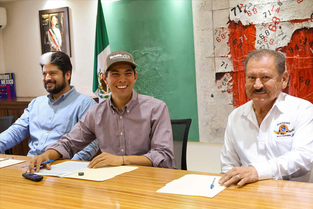 El Gobierno de Tecate firmó un importante convenio de colaboración con el Sindicato Nacional de Trabajadores, Obreros de Industria y Asalariados del Campo, Similares y Conexos (SINTOIAC), y la empresa COMEX, con el objetivo de sumar esfuerzos para llevar programas sociales, apoyos comunitarios y acciones de recuperación de espacios a todas las zonas del municipio.
