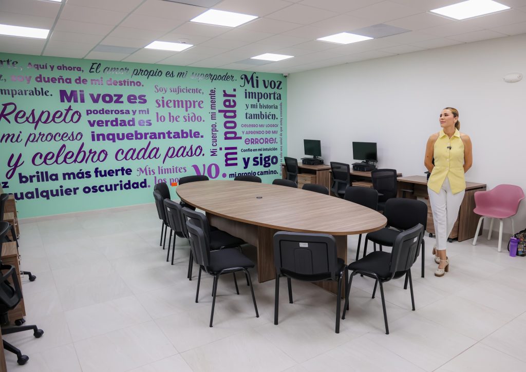 Este espacio cuenta con siete salas de atención, una de ellas especializada para niñas, niños y adolescentes, además de estar equipada con cámaras Gesell, consultorio médico, sala de empoderamiento con capacidad para 100 personas, talleres productivos, sala de cómputo, ludoteca, lactario y una boutique.