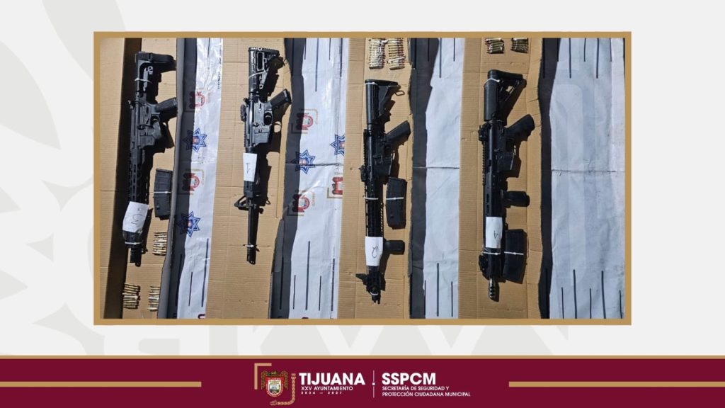 Durante el cateo se localizaron cuatro fusiles calibre .223 y tres cargadores con 80 cartuchos útiles.