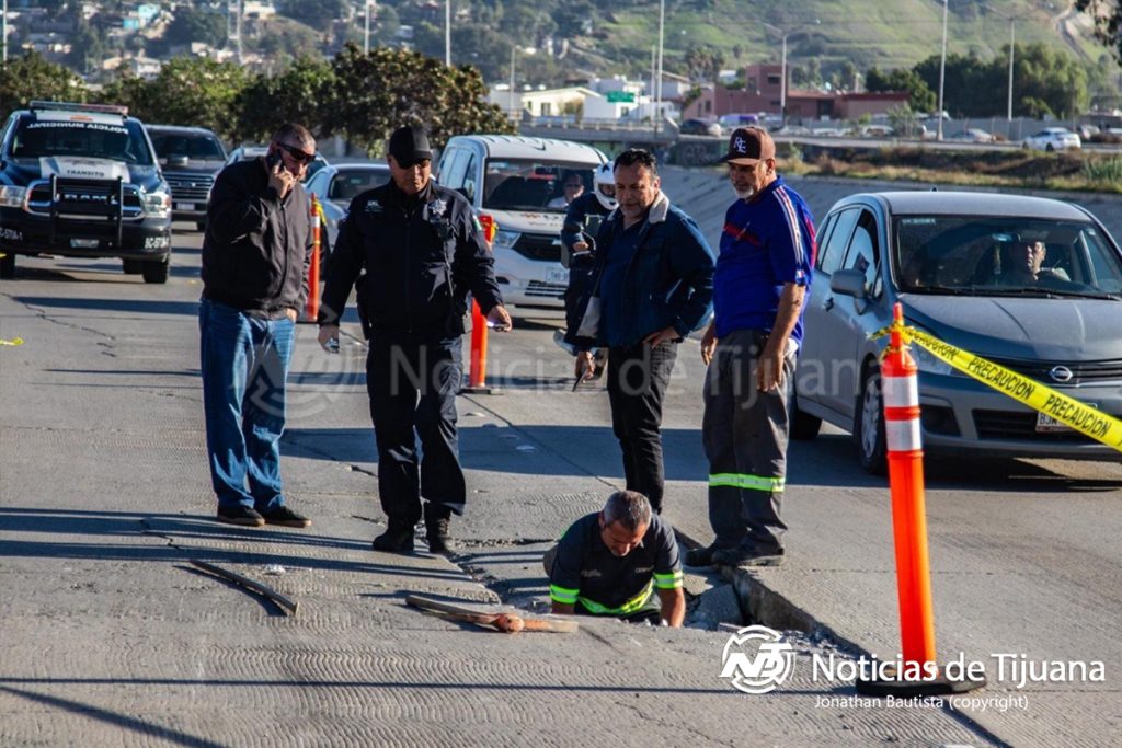 Agentes de la Policía Municipal, adscritos a la sección de Peritos, fueron los primeros en llegar y de inmediato acordonaron el área para prevenir accidentes. Poco después, personal de la Dirección de Obras e Infraestructura Urbana Municipal inició la evaluación del daño y los trabajos preliminares para determinar la dimensión del hundimiento.