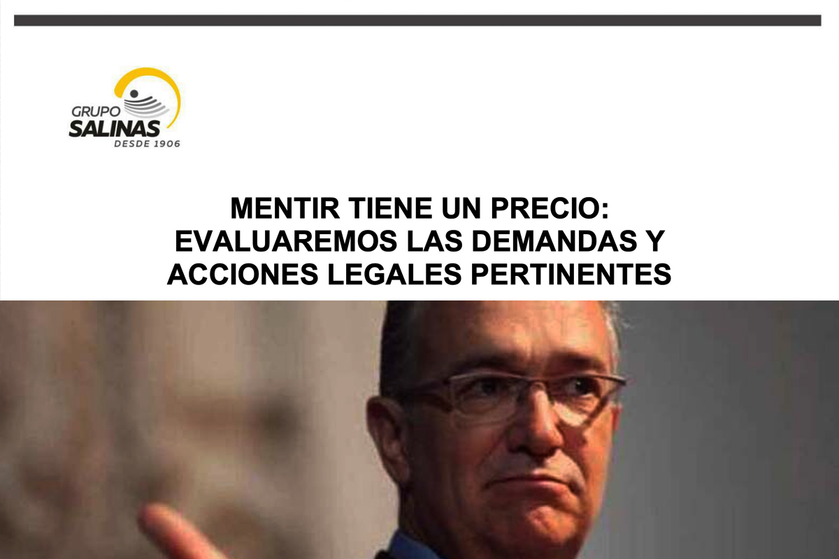 Grupo Salinas, del empresario Ricardo Salinas Pliego, informó que analiza demandas en México y Estados Unidos contra la presidenta Claudia Sheinbaum, luego de que el medio “Bloomberg” diera a conocer la fianza de 25 mdd que este pagó para no pisar la cárcel, derivada de la venta con presunto dolo de una telefónica de su propiedad.
