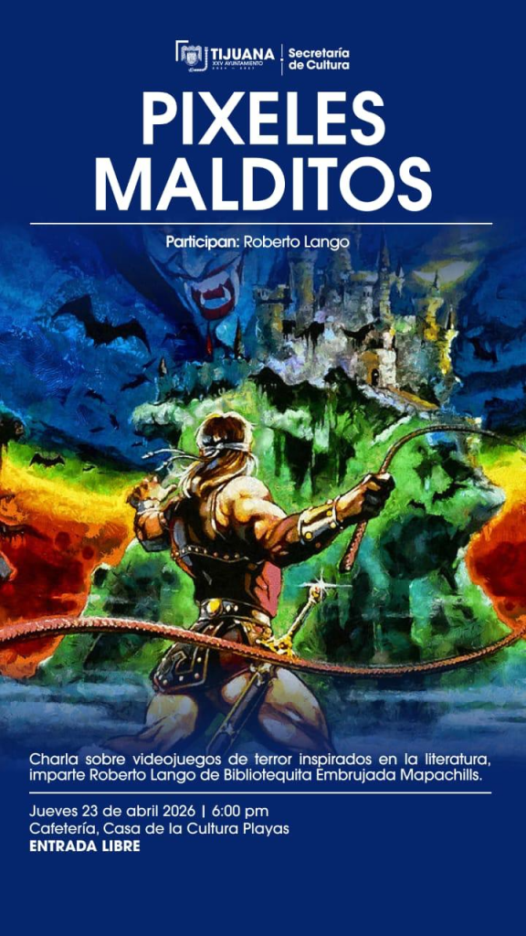 La agenda continúa este mismo 23 de abril a las 18:00 horas en la Casa de la Cultura de Playas de Tijuana con la charla “Pixeles Malditos”, impartida por Roberto Lango, enfocada en videojuegos de terror inspirados en la literatura.