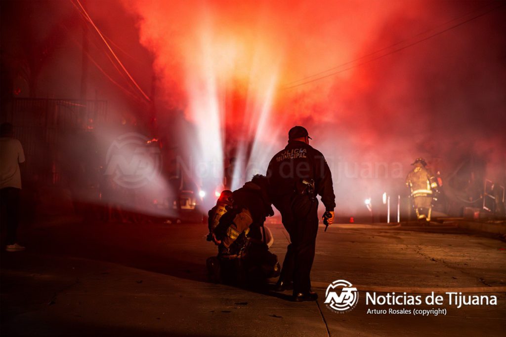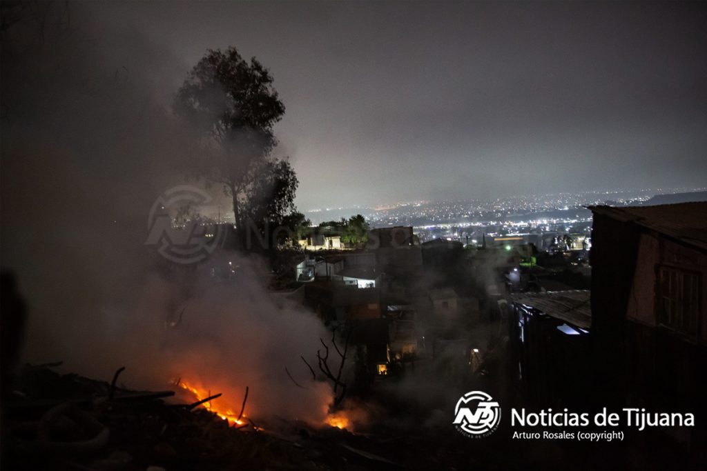 Elementos de la Dirección de Bomberos de Tijuana se dirigieron hasta la avenida Tecoatzin, sin embargo, las viviendas, de aproximadamente cuatro por cinco metros, ya habían sido alcanzadas por el fuego.