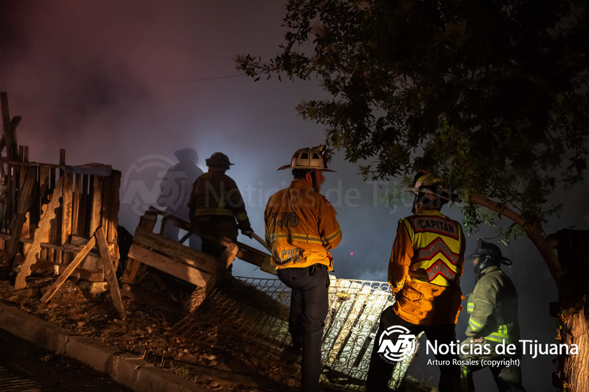 Elementos de la Dirección de Bomberos de Tijuana se dirigieron hasta la avenida Tecoatzin, sin embargo, las viviendas, de aproximadamente cuatro por cinco metros, ya habían sido alcanzadas por el fuego.