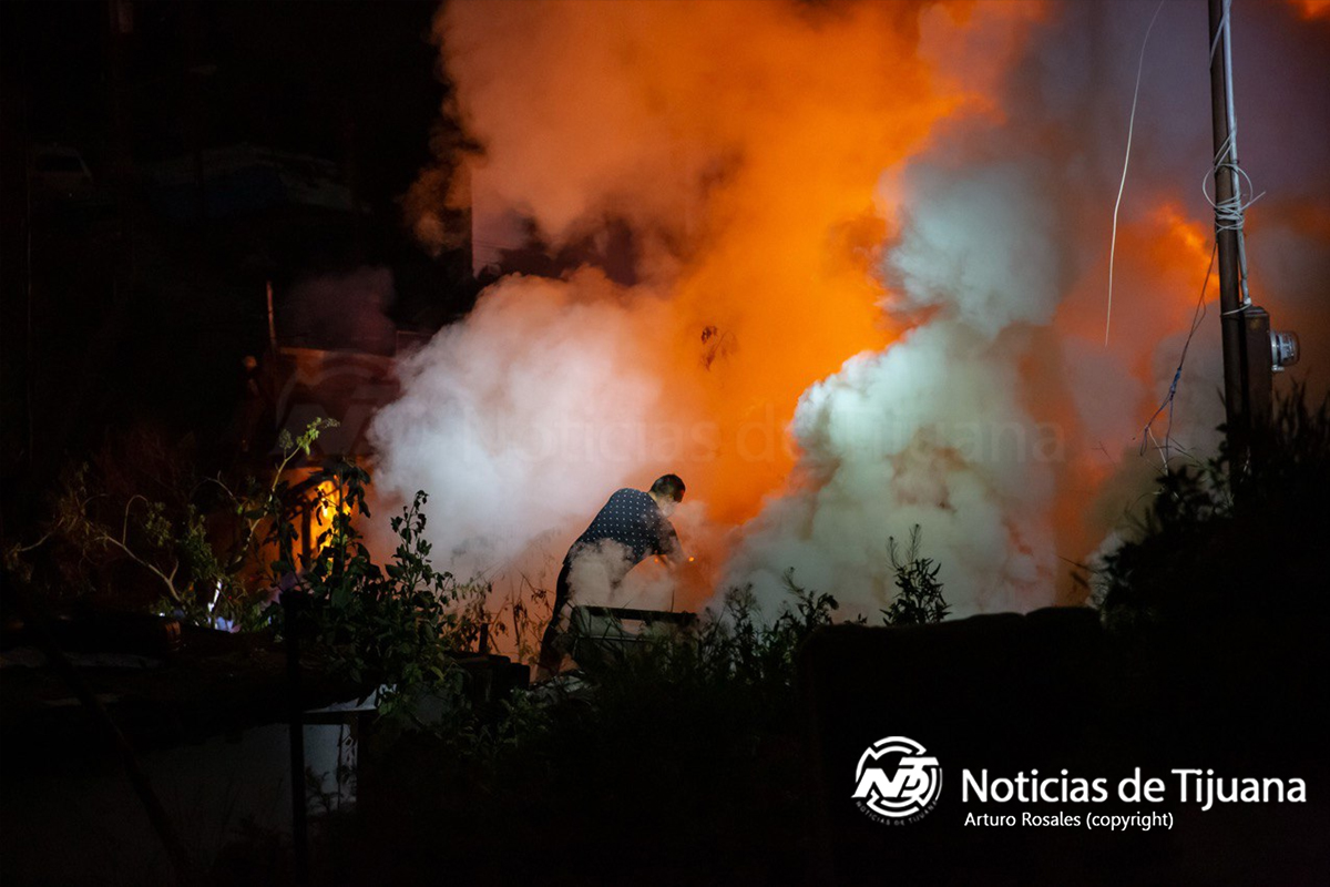 Una persona fue localizada en estado de carbonización en el interior de una casa, luego de que un incendio arrasara con cinco casas de madera la madrugada del jueves 10 de abril, en la calle Claveles de la colonia Tejamen.