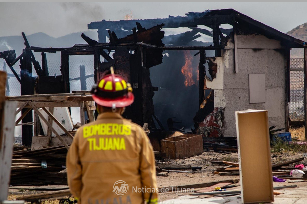 Tijuana. B.C. (NDT).– Un incendio registrado en una zona de invasión del fraccionamiento El Dorado Residencial dejó como saldo la pérdida total de dos cuartos construidos con madera.