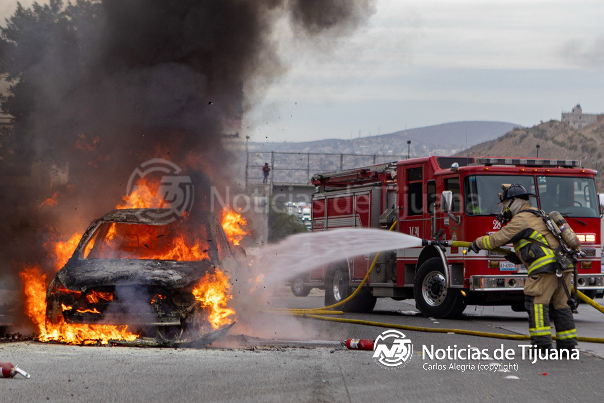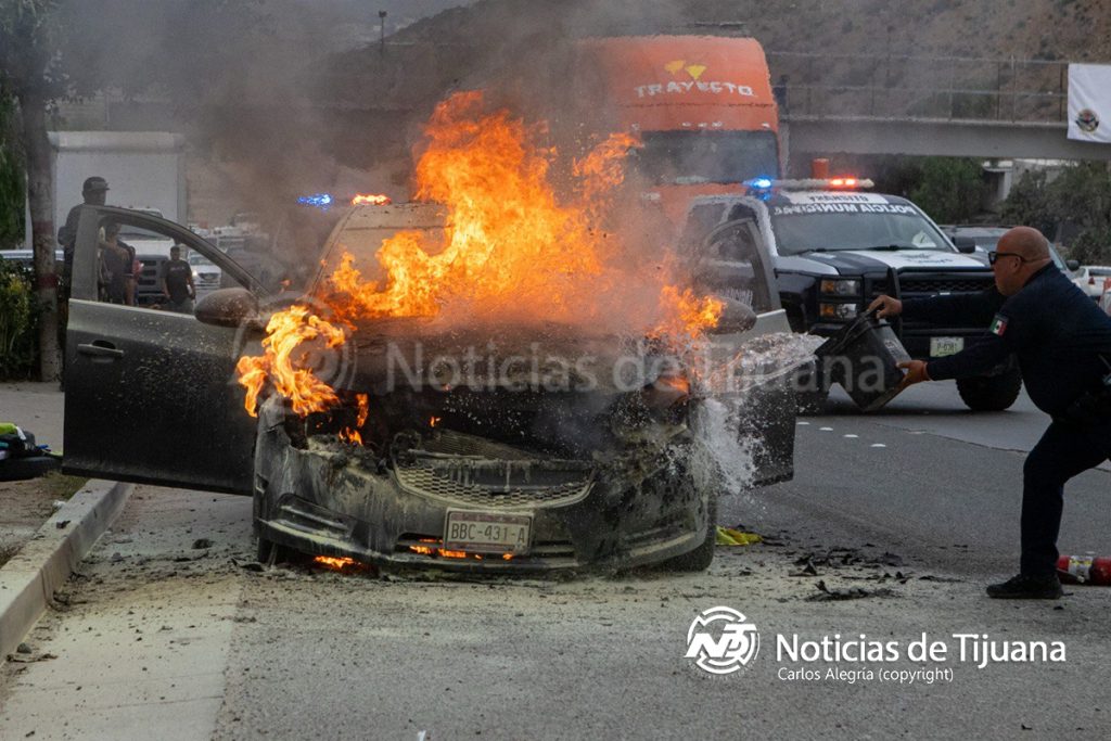 Un automóvil terminó envuelto en llamas la tarde del viernes 14 de noviembre sobre el bulevar 2000, a la altura de la colonia Altiplano, luego de que su conductor detectara humo proveniente del sistema de aire acondicionado.