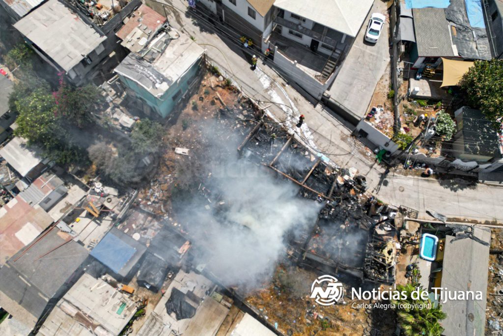 Un incendio consumió por completo una casa en obra negra ubicada sobre las calles Piedra y Coral de la colonia los Álamos, provocando la movilización de elementos del cuerpo de Bomberos de Tijuana.